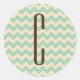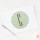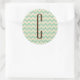 Pegatina Redonda Monograma marrón sobre el patrón de cheurón verde