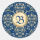 Pegatina Redonda Monograma Medieval Dorado Midnight Blue Damask