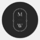 Pegatina Redonda Monograma minimalista Boda blanco y negro