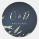 Moderna moda minimalista acuarela de diseño vegetal botánico sobre fondo azul marino, con monograma de parejas en el centro, grandes focas para boda moderno, boda rústico y bodas botánicas en verano y otoño. Vea todas las piezas coincidentes de la colección.