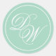 Pegatina Redonda Monograma Mint Green 2 Iniciales Guión Blanco Simp