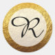 Pegatina Redonda Monograma moderno con lámina de oro sintético