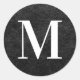 Pegatina Redonda Monograma moderno de cuero negro falso