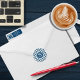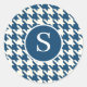 Pegatina Redonda Monograma moderno de Houndstoth Blue & White