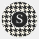 Pegatina Redonda Monograma moderno de Houndstoth en blanco y negro