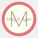 Pegatina Redonda Monograma moderno de oro y rosa