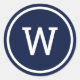 Pegatina Redonda Monograma moderno elegante azul marino