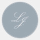 Pegatina Redonda Monograma moderno Guión sencillo Boda azul turbio