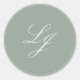 Pegatina Redonda Monograma moderno Guión sencillo Sage Boda verde
