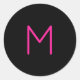 Pegatina Redonda Monograma moderno rosa y negro editable