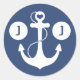 Pegatina Redonda Monograma náutico azul y blanco