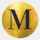 Pegatina Redonda Monograma negro clásico sobre Relieve metalizado d
