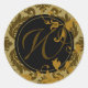 Pegatina Redonda Monograma Neopolitano Damask "W" (apio/mostaza)