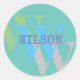 Monograma nombre gris azul gris GREEN elegante regalo Clásico Pegatina Redondo Fácil de personalizar. nombre tipo de letra personal, tamaño y colores se pueden cambiar. Elementos coincidentes disponibles.