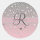 Pegatina Redonda Monograma Nombre Estrellas rosadas de plata gris m