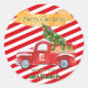 ¡Esta pegatina clásica de Navidad de serie es perfecta para regalos de Santa! Pegatina muestra tu monograma inicial en un camión rojo rústico y tu nombre como el entregador, y "Feliz Navidad" en un cartel dorado con tipografía vintage sobre fondo de rayas de caramelo rojo y blanco. El pegatina se puede personalizar fácilmente con su nombre y su monograma.