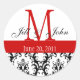 Pegatina Redonda Monograma Nombres Fecha Damasco Boda Rojo Blanco