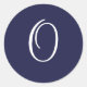 Pegatina Redonda Monograma O, blanco sobre azul marino,
