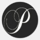 Pegatina Redonda Monograma P - blanco y negro elegante