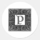 Pegatina Redonda Monograma "P" celta plateado