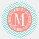 Pegatina Redonda Monograma personalizado Aqua Chevron Zigzag