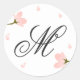 Pegatina Redonda Monograma Personalizado de flores de cerezo rosado