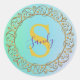 Pegatina Redonda Monograma personalizado Mandala Oro y turquesa