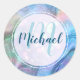 Pegatina Redonda Monograma personalizado moderno y nombre líquido