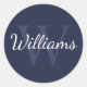 Pegatina Redonda Monograma personalizado y nombre azul de la Marina