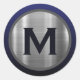 Pegatina Redonda Monograma Plata Cepillada Azul Marino