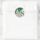 Pegatina Redonda Monograma Plata, Oro y Feliz Navidad Verde