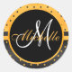 Pegatina Redonda Monograma puntos de polka negro y amarillo dorado