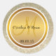Pegatina Redonda Monograma Purpurina de oro y Boda de oro metálico