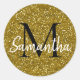 Pegatina Redonda Monograma Purpurina dorado Nombre inicial