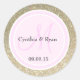 Pegatina Redonda Monograma Purpurina dorado y Boda rosa claro