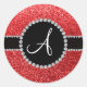 Pegatina Redonda Monograma purpurina rojo círculo negro de diamante