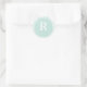 Pegatina Redonda Monograma R Dusty Aqua Personalizado Separa Pegati