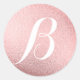 Monograma Relieve metalizado Faux Pink Pegatina redondo clásico
