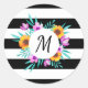 Hermosos pegatinas con acuarela floral coronaron fondo rayado en blanco y negro. Personalizar el monograma eligiendo entre muchas fuentes maravillosas.