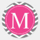 Pegatina Redonda Monograma rosa de Chevron gris