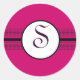 Pegatina Redonda Monograma Rosa Profundo Negro Encaje Frambuesa Pro