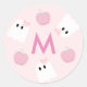 Pegatina Redonda Monograma rosado de la chica fantasma de Halloween