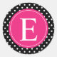 Pegatina Redonda Monograma rosado de punto de polka negro