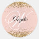 Pegatina Redonda Monograma Rubor de Purpurina Faux Sparkly Gold