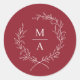 Pegatina Redonda Monograma Rústico Red Simple Elegante Laurel Wreat