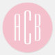 Pegatina Redonda Monograma simple de tres letras rosa y blanco
