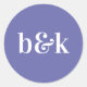 Pegatina Redonda Monograma simple Minimalista Iniciales Boda púrpur