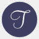 Pegatina Redonda Monograma T, blanco sobre azul marino,