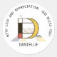 Gran monograma artístico, divertido. Aquí está la letra "D". Estilo neoplasticismo, o De Stijl, decoración artística de línea y color, el pájaro gracioso se sienta en la carta. El campo de arte se encuentra bajo la letra. El nombre de la plantilla "DANIELLE" se encuentra debajo de la imagen. "Con amor y aprecio. ¡Que Dios te bendiga!" El texto gira alrededor de la imagen. Puede cambiar o eliminar todos los textos y puede cambiar la imagen. Único pegatina único para usted. Puede transferir este diseño a varios productos. No dude en usar el botón "Editar diseño" o "Personalizar" (como puede ser el funda) del color azul para cambiar el tipo de letra, color o posición de la imagen y el texto de la plantilla. Sé creativo, personalizar, cómprate uno y sé feliz!