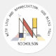Buen monograma artístico, divertido. Aquí está la letra "N". Estilo neoplasticismo, o De Stijl, decoración artística de línea y color, el pájaro gracioso se sienta en la carta. El campo de arte se encuentra bajo la letra. El nombre de la plantilla "NICHOLSON" se encuentra debajo de la imagen. "Con amor y aprecio. ¡Que Dios te bendiga!" El texto gira alrededor de la imagen. Puede cambiar o eliminar todos los textos y puede cambiar la imagen. Único pegatina único para usted. Puede transferir este diseño a varios productos. No dude en usar el botón "Editar diseño" o "Personalizar" (como puede ser el funda) del color azul para cambiar el tipo de letra, color o posición de la imagen y el texto de la plantilla. Sé creativo, personalizar, cómprate uno y sé feliz!